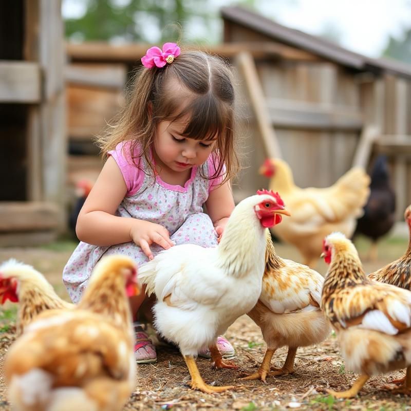 In der Nähe, am Tor eines Gartens, war ein Mädchen, das nicht einmal bemerkt hatte, dass sich die Gruppe näherte. Fröhlich, völlig versunken, beobachtete sie einige Küken, die um ihre kleinen Füße pickten und die Erde scharrten.